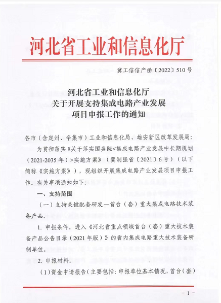 關于轉發(fā)《河北省工信廳關于開展支持集成電路產業(yè)發(fā)展項目申報工作的通知》的通知區(qū)各相關企業(yè): 現將河北省工信廳《關于開展支持集成電