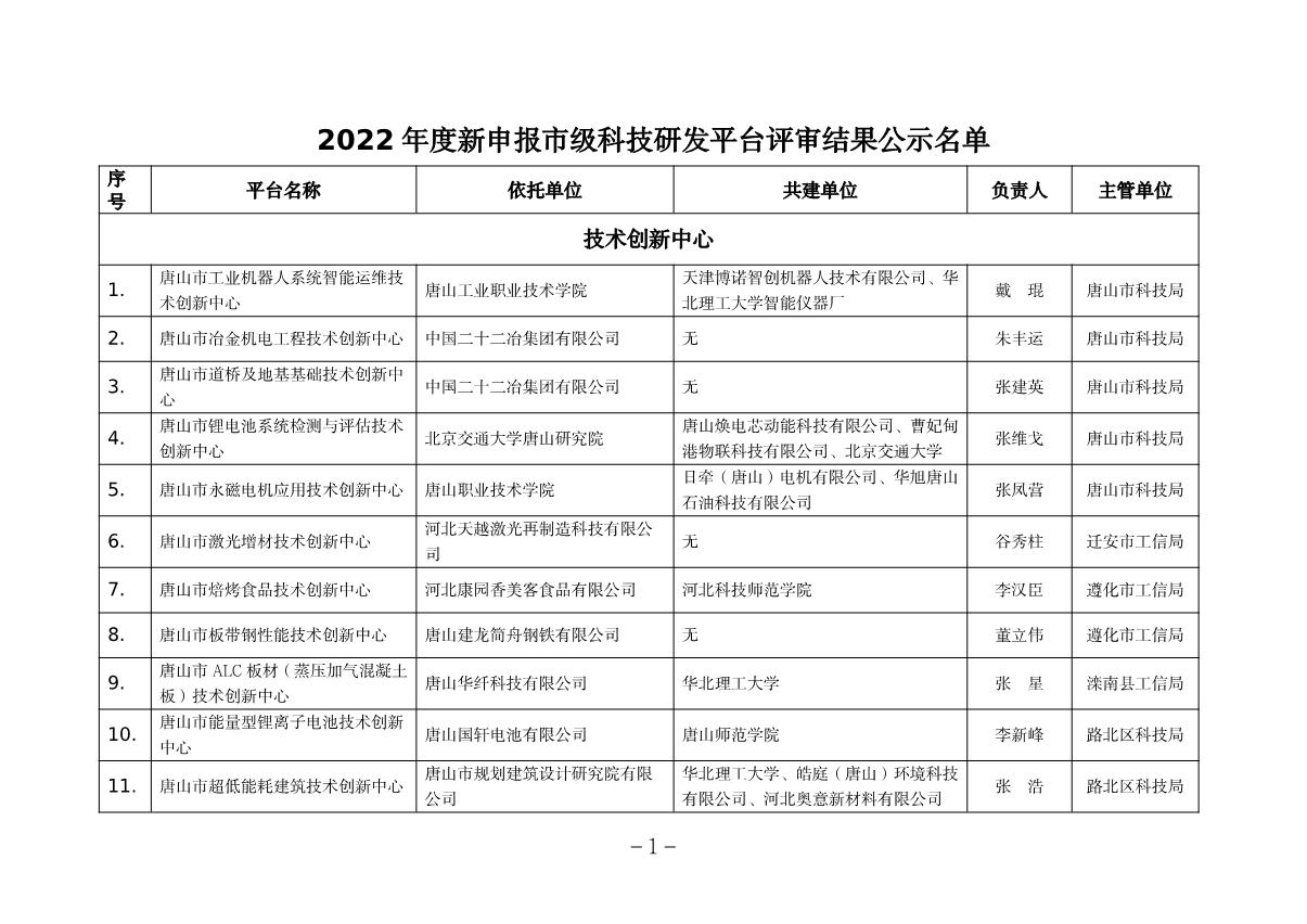 關于2022年度新申報市級科技研發(fā)平臺評審結果的公示發(fā)布時間:2022-09-21 15:59:07按照《唐山市科技研發(fā)平臺建設與運行管理辦法》等文件規(guī)
