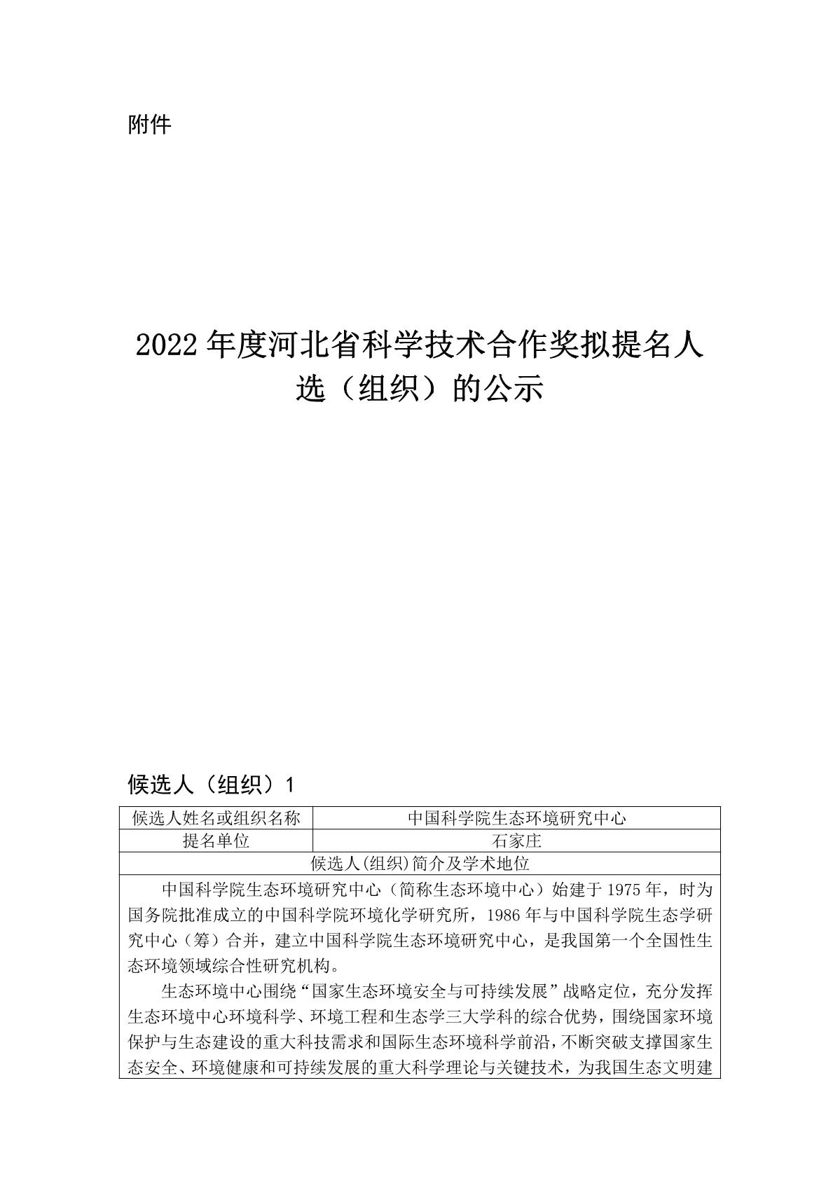 關于2022年度河北省科學技術合作獎擬提名人選(組織)的公