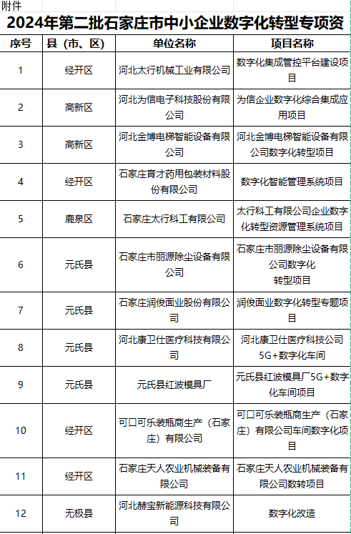 關(guān)于2024年第二批石家莊市中小企業(yè)數(shù)字化轉(zhuǎn)型專項資金擬支