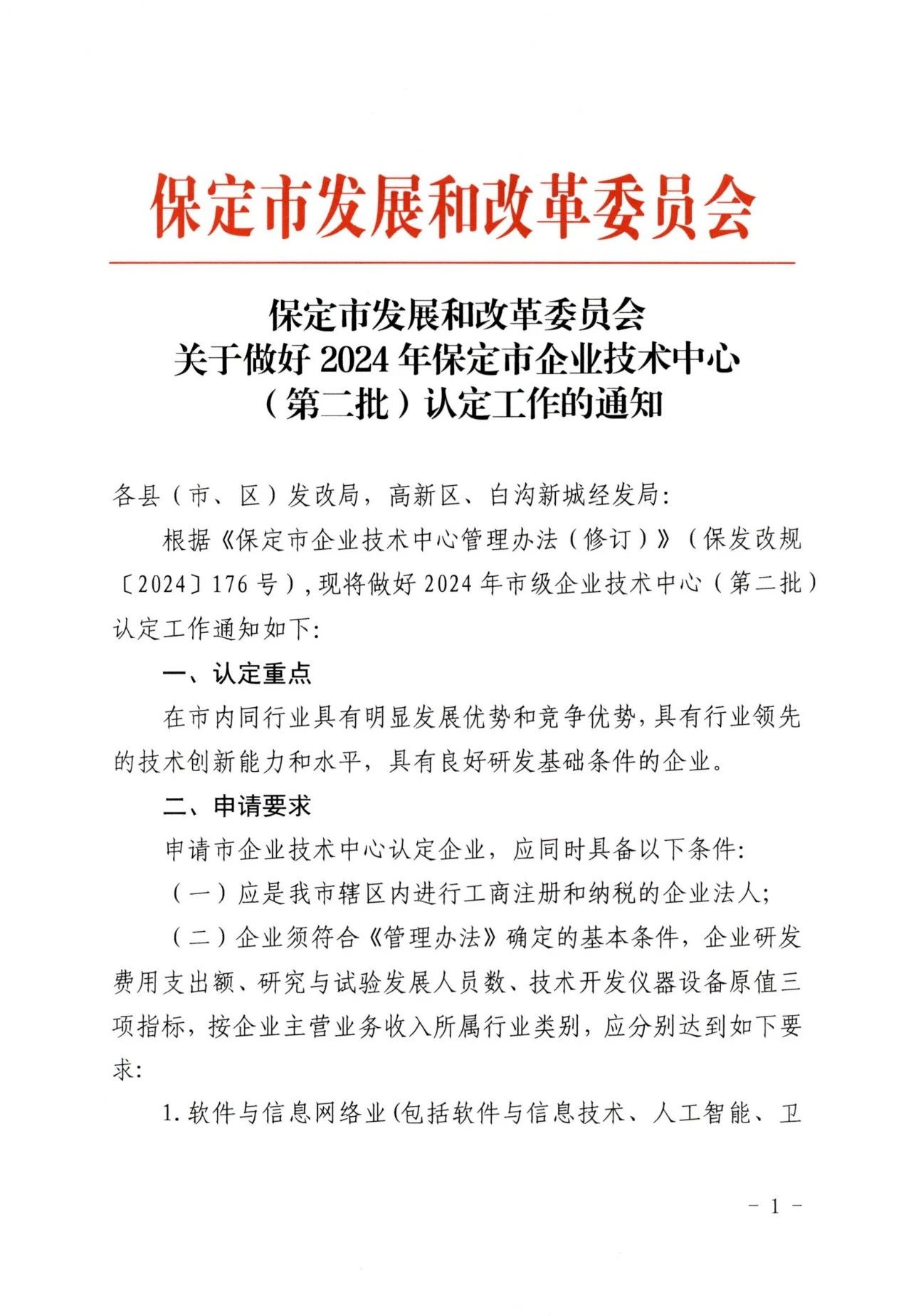保定市發(fā)展和改革委員會關于做好2024年保定市企業(yè)技術中心(第二批)認定工作的通知