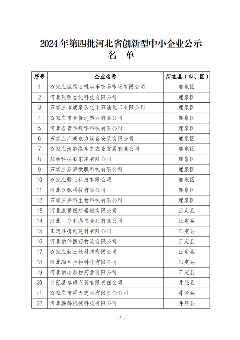 關(guān)于擬推薦2024年第四批河北省創(chuàng)新型中小企業(yè)名單的公示