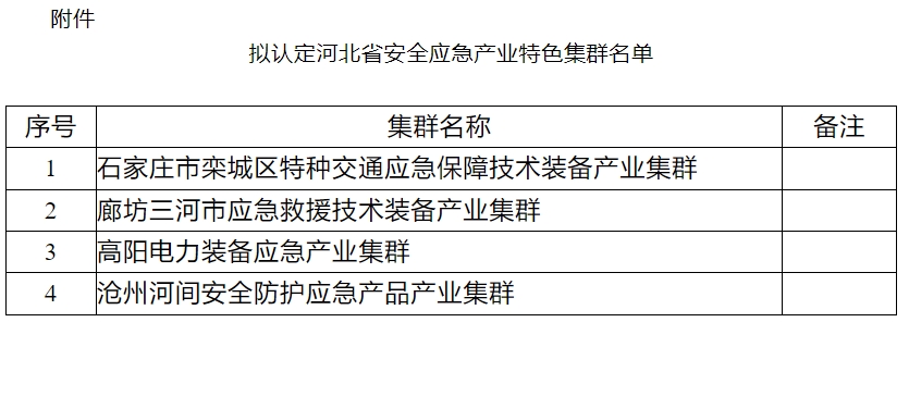 關(guān)于2024年河北省安全應(yīng)急產(chǎn)業(yè)特色集群名單的公示