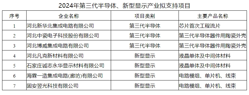 關(guān)于2024年第三代半導(dǎo)體、新型顯示產(chǎn)業(yè)擬支持項目的公示