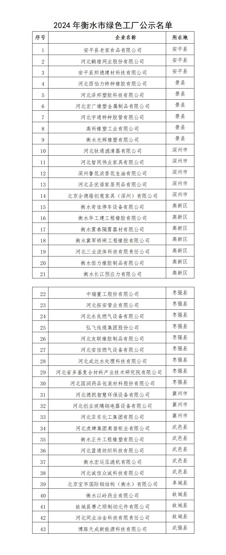 2024年度衡水市綠色工廠名單