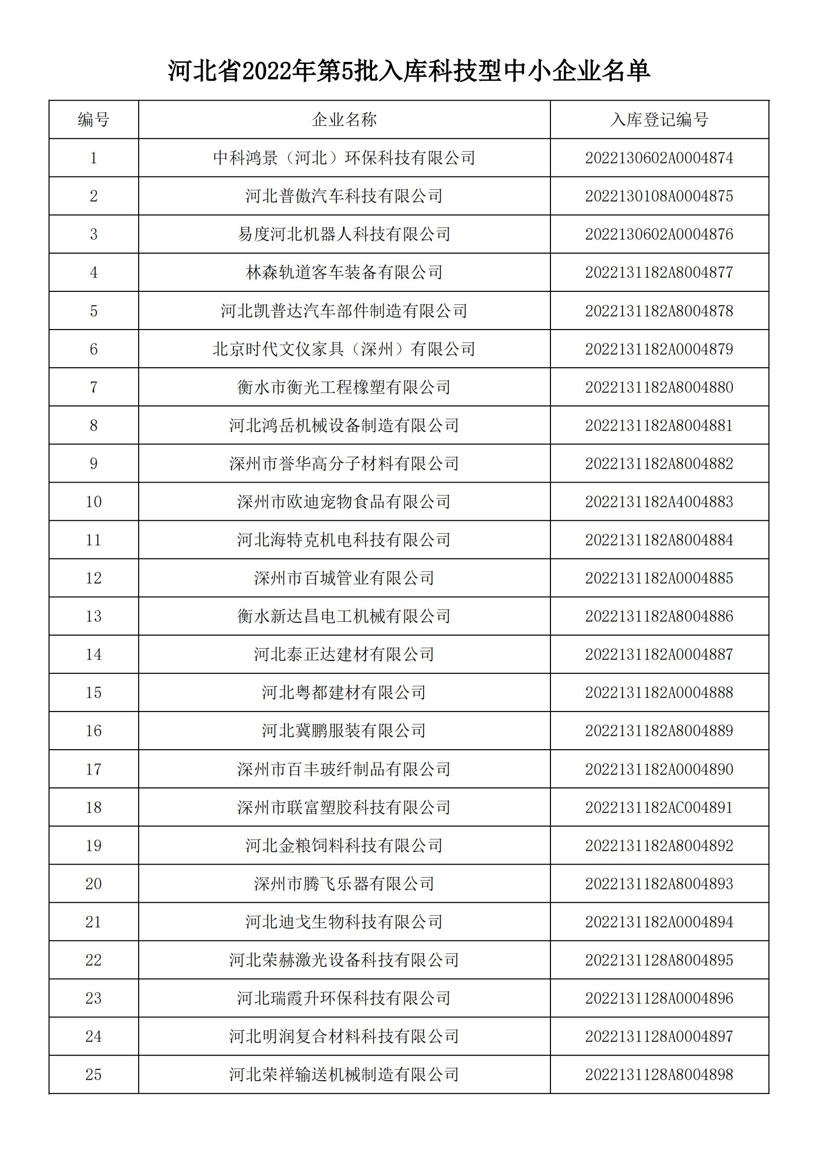 河北省科學技術廳關于2022年第五批納入“科技型中小企業(yè)信息庫”企業(yè)名單的公告 根據(jù)《科技型中小企業(yè)評價辦法》(國科發(fā)政〔2017〕115