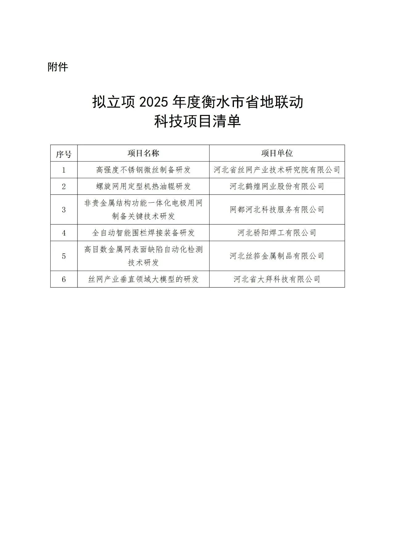 衡水市科學(xué)技術(shù)局關(guān)于對2025年度擬立項(xiàng)科技計(jì)劃(自籌經(jīng)費(fèi)