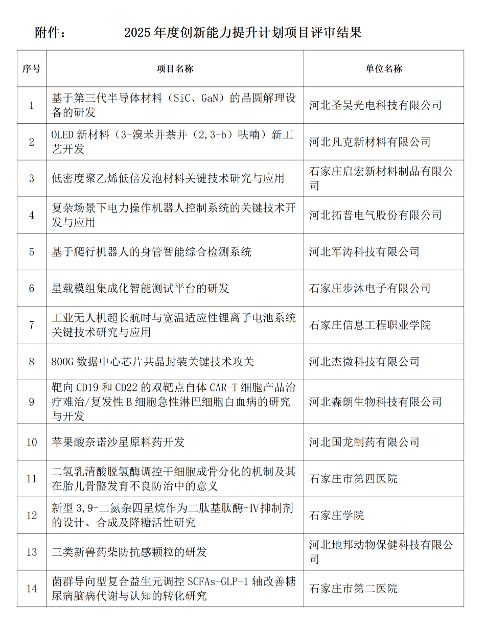2025年石家莊市創(chuàng)新能力提升專項(xiàng)項(xiàng)目擬立項(xiàng)名單公示