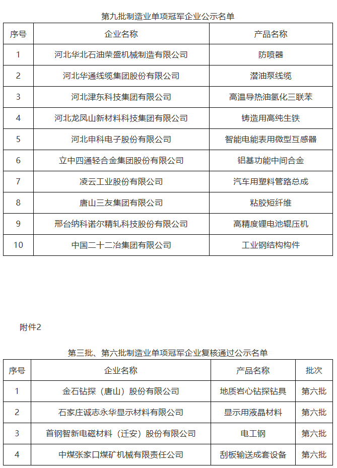 關(guān)于第九批制造業(yè)單項(xiàng)冠軍企業(yè)和復(fù)核通過(guò)第三批、第六批
