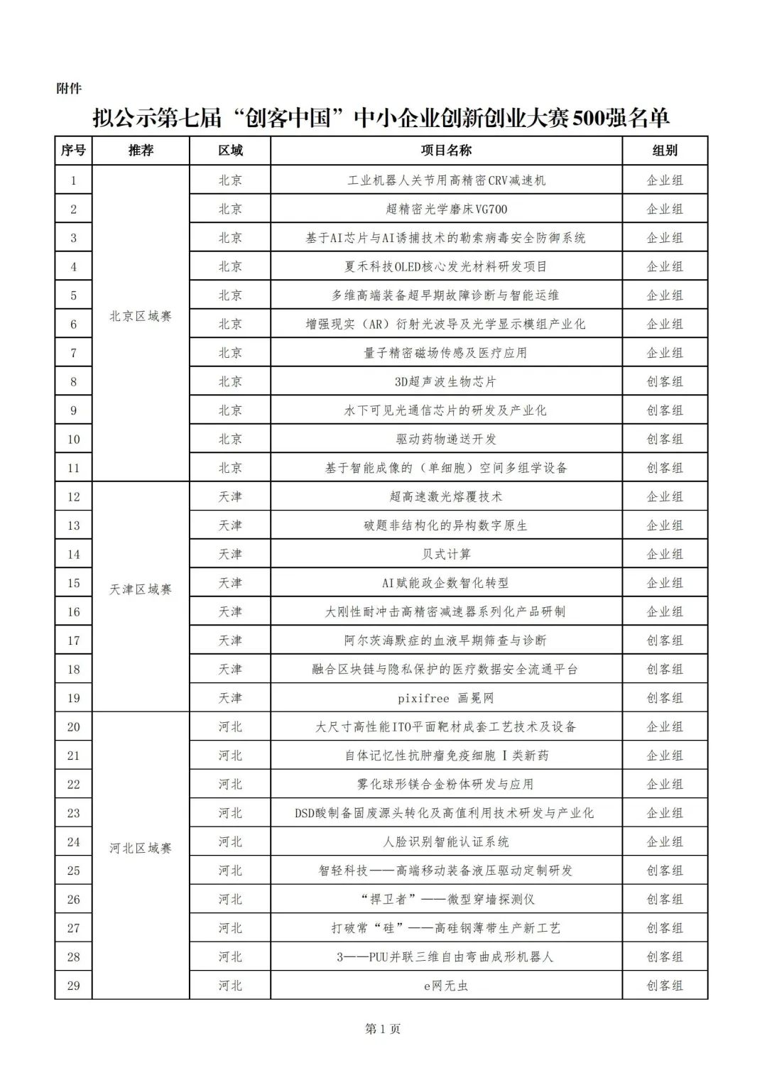 關(guān)于第七屆“創(chuàng)客中國”中小企業(yè)創(chuàng)新創(chuàng)業(yè)大賽500強名單的