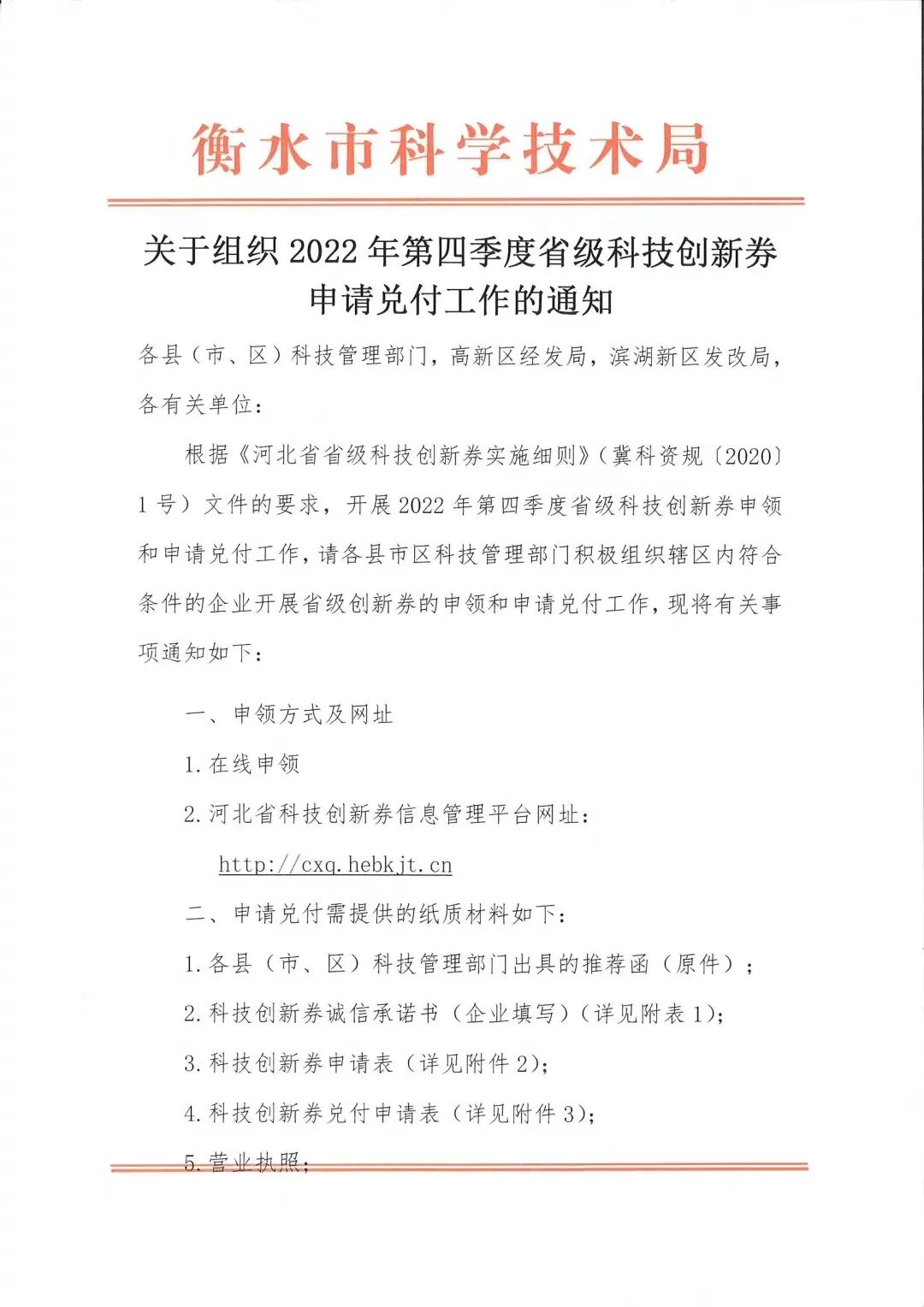關(guān)于組織2022年第四季度省級科技創(chuàng)新券申請兌付工作的通知