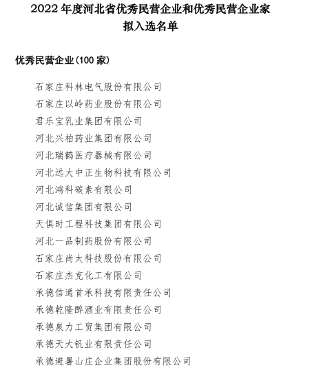 2022年度河北省優(yōu)秀民營企業(yè)和優(yōu)秀民營企業(yè)家擬入選名單公