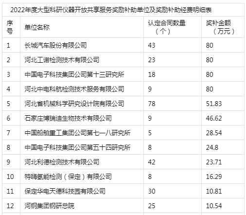 河北省科學(xué)技術(shù)廳關(guān)于2022年度大型科研儀器設(shè)備開放共享服務(wù)補助經(jīng)費的公示 按照河北省人民政府《關(guān)于推動科技創(chuàng)新平臺和大型儀器設(shè)備向