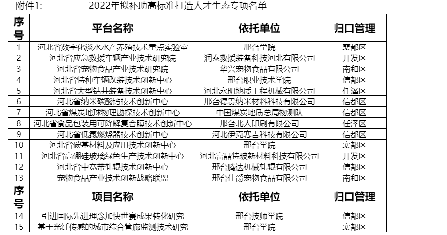 關(guān)于2022年高標準打造人才生態(tài)專項補助、高企認定獎勵補助名單的公示為落實《中共邢臺市委 邢臺市人民政府關(guān)于高標準打造人才生態(tài)實施意見