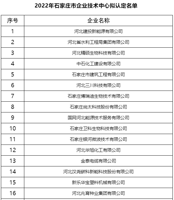 關(guān)于2022年石家莊市企業(yè)技術(shù)中心認(rèn)定名單的公示