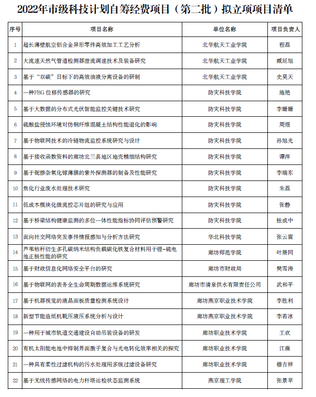 廊坊市科學(xué)技術(shù)局關(guān)于2022年市級(jí)科技計(jì)劃自籌經(jīng)費(fèi)項(xiàng)目(第