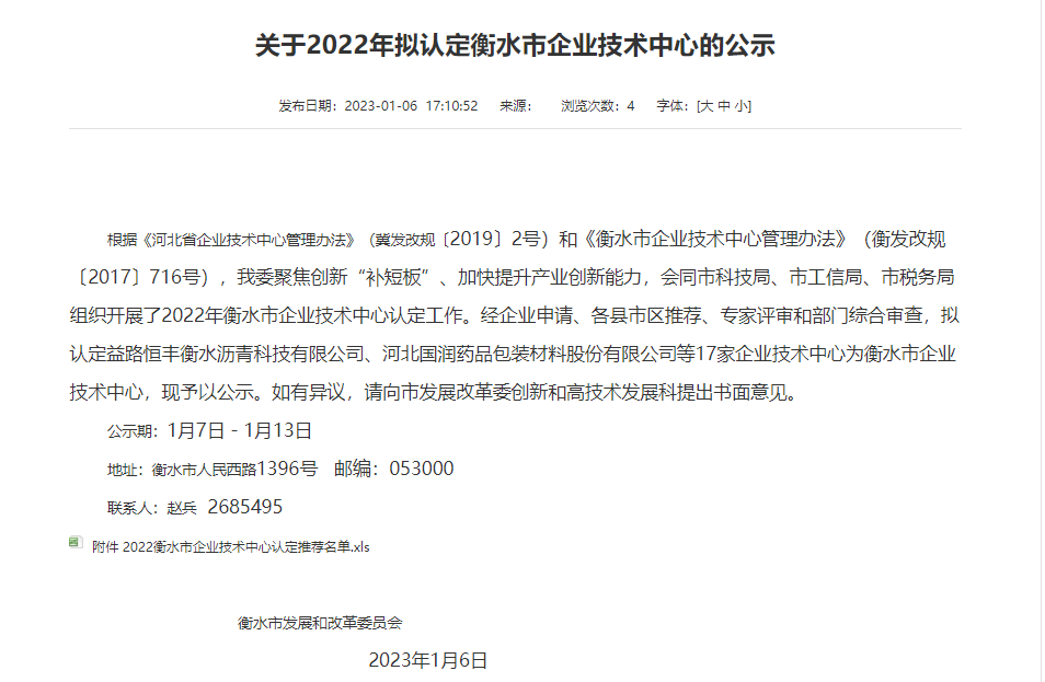 關(guān)于2022年擬認(rèn)定衡水市企業(yè)技術(shù)中心的公示