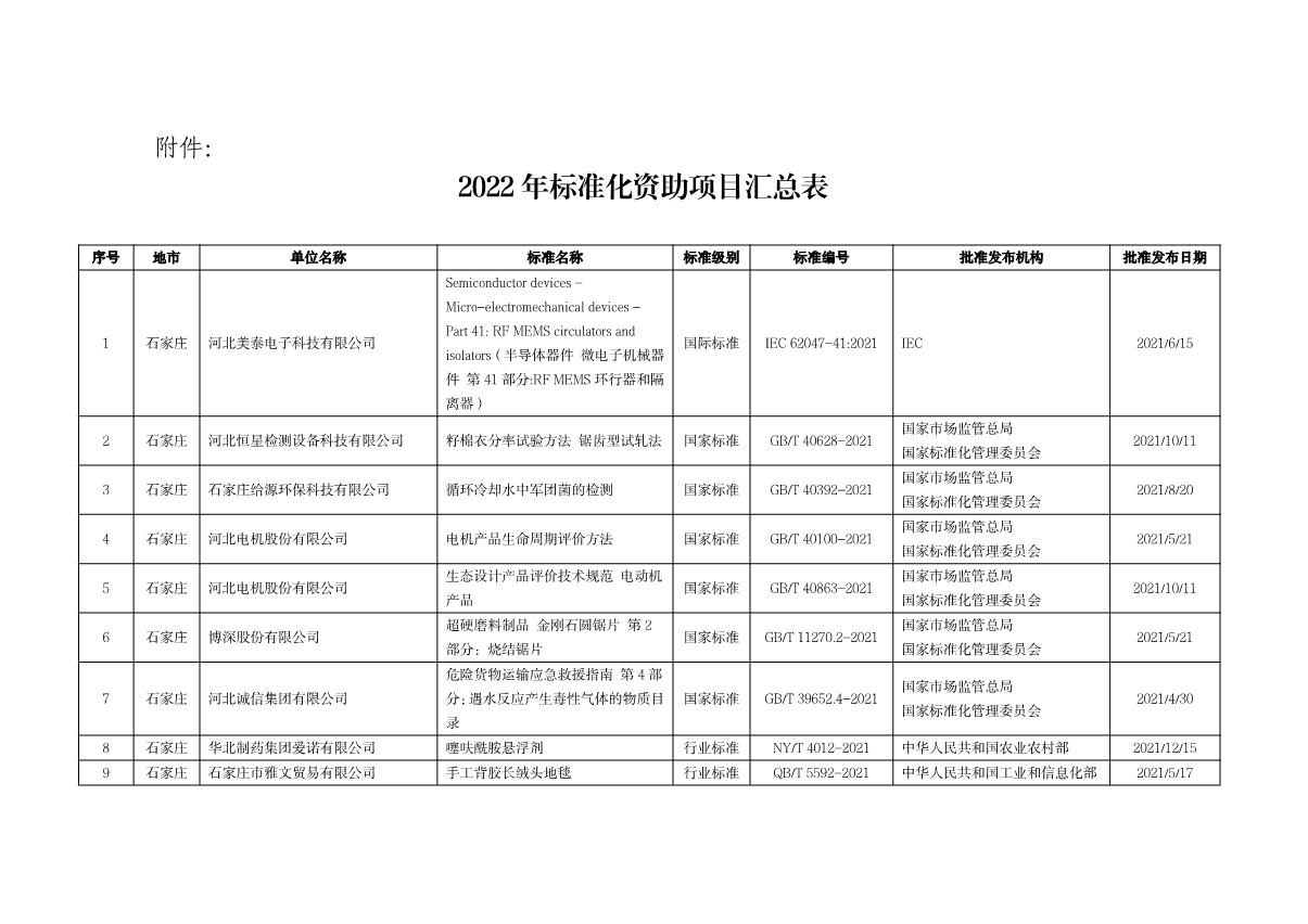 河北省市場(chǎng)監(jiān)督管理局關(guān)于2022年標(biāo)準(zhǔn)化資助項(xiàng)目的公告