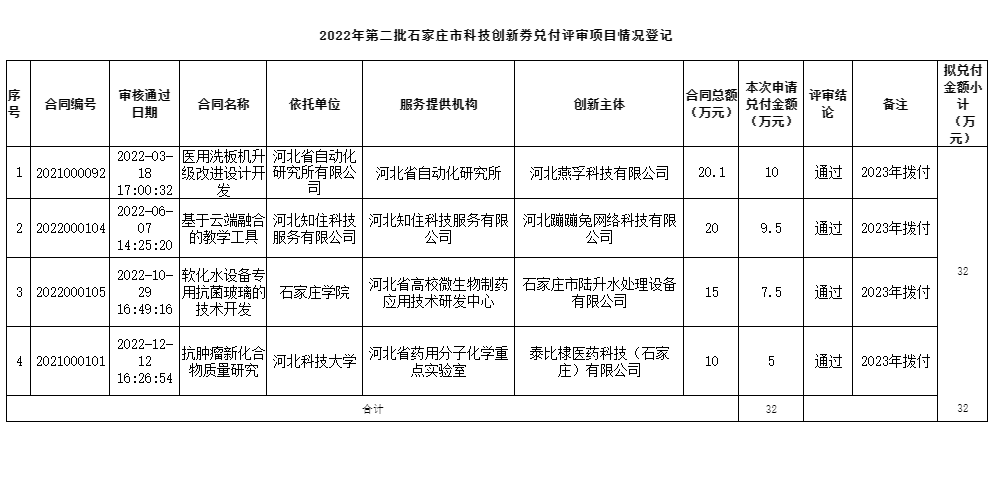 2022年第二批石家莊市科技創(chuàng)新券擬兌付資金公示