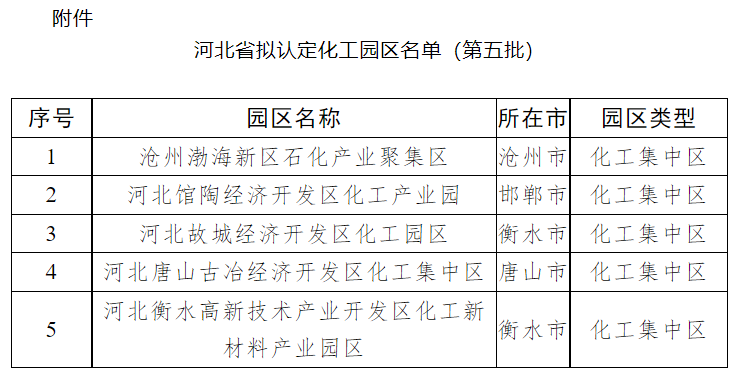 關于河北省擬認定化工園區(qū)名單(第五批)的公示