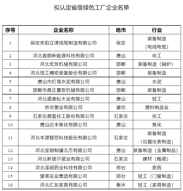 關于對省級綠色工廠名單的公示 為進一步完善綠色制造體系建設,推進綠色制造,根據(jù)我廳《關于公布2022年河北省綠色制造名單的通知》(冀