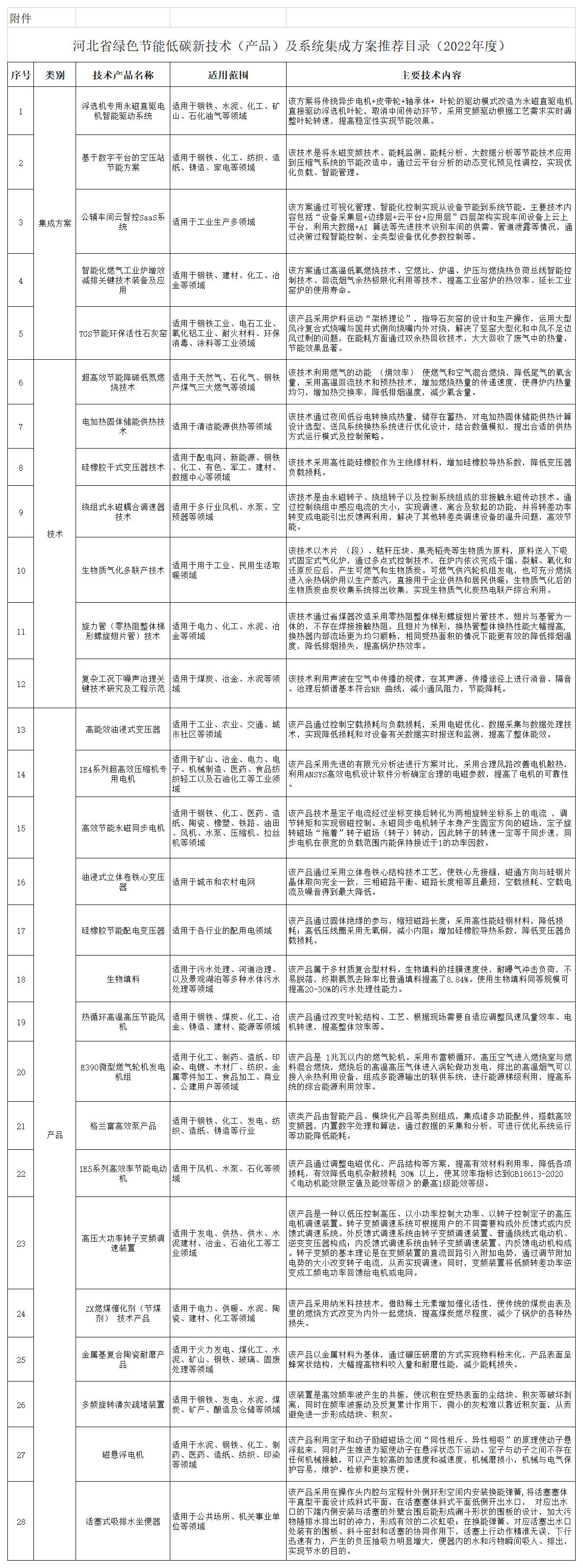河北省綠色節(jié)能低碳新技術(shù)(產(chǎn)品)及系統(tǒng)集成方案推薦目錄(2022年度)公示為貫徹落實(shí)《中華人民共和國(guó)節(jié)約能源法》《河北省節(jié)約能源條例》,