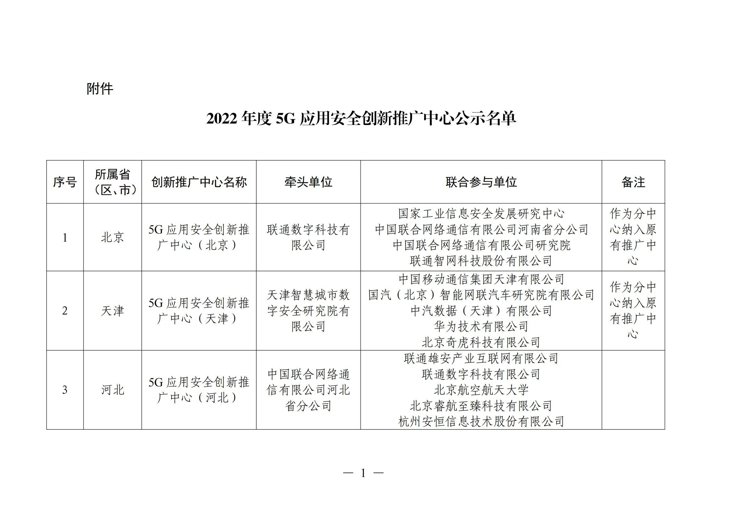 關(guān)于2022年度5G應(yīng)用安全創(chuàng)新推廣中心名單的公示據(jù)《工業(yè)和信息化部辦公廳關(guān)于開(kāi)展2022年度5G應(yīng)用安全創(chuàng)新推廣中心申報(bào)工作的通知》( 工信