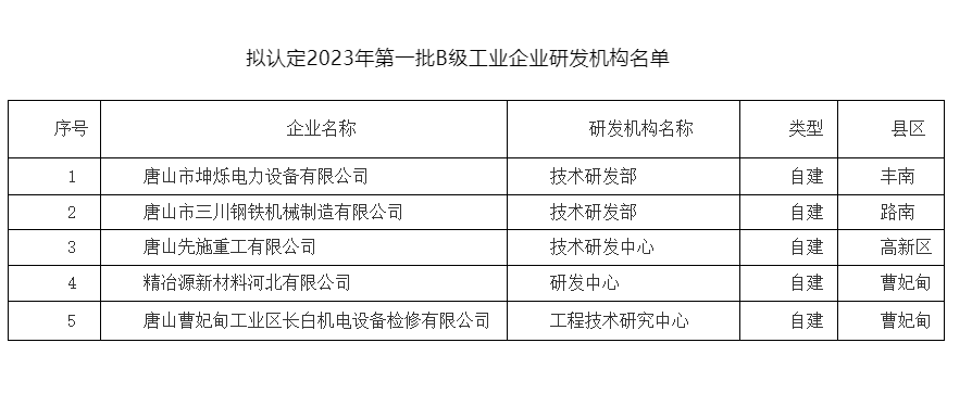 2023年第一批B級工業(yè)企業(yè)研發(fā)機構(gòu) 擬認(rèn)定名單公示按照《河北省工業(yè)企業(yè)研發(fā)機構(gòu)認(rèn)定管理辦法》相關(guān)要求,我局組織開展了2023年第一批B級工