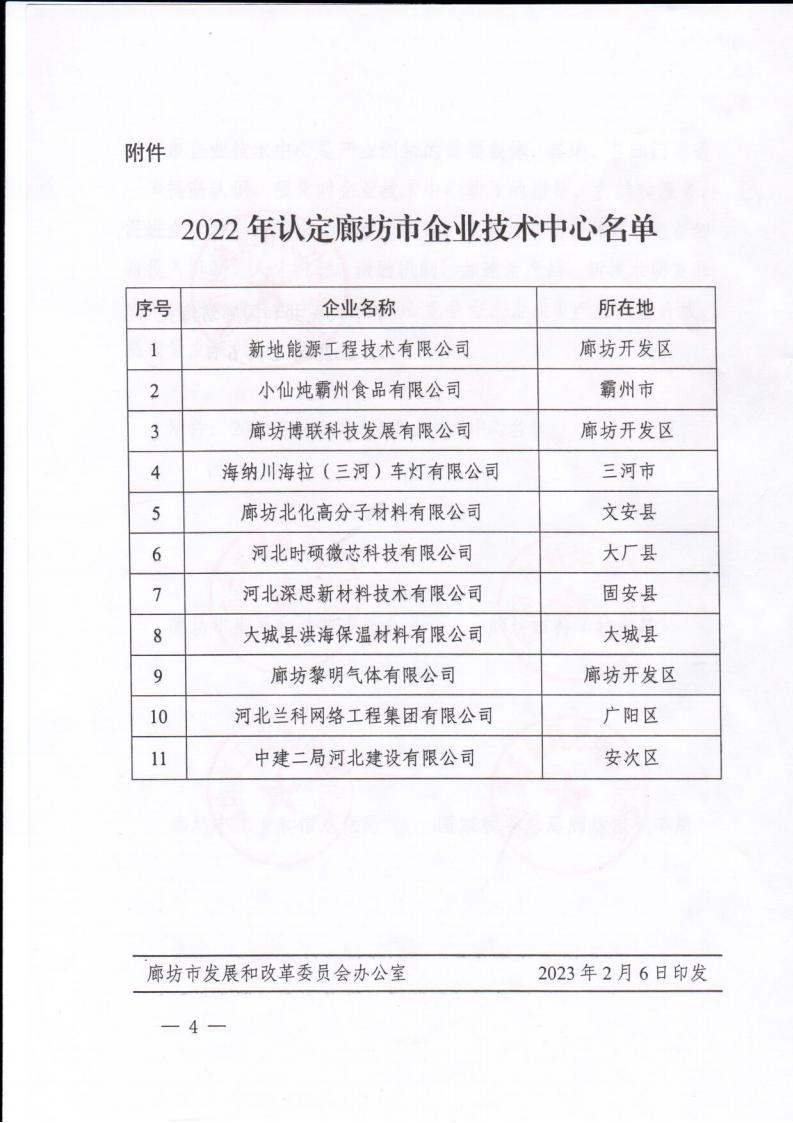 關(guān)于發(fā)布2022年廊坊市企業(yè)技術(shù)中心名單的通知