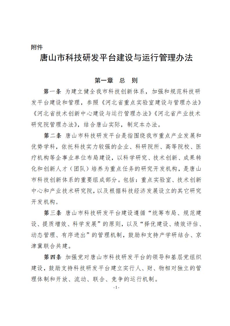 關(guān)于印發(fā)《唐山市科技研發(fā)平臺(tái)建設(shè)與運(yùn)行管理辦法》的通