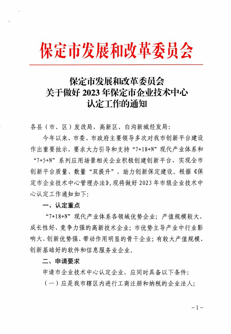 關于做好2023年保定市企業(yè)技術中心認定工作的通知