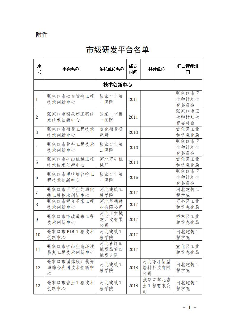 張家口市科學技術局關于開展市級研發(fā)平臺年報統(tǒng)計工作的