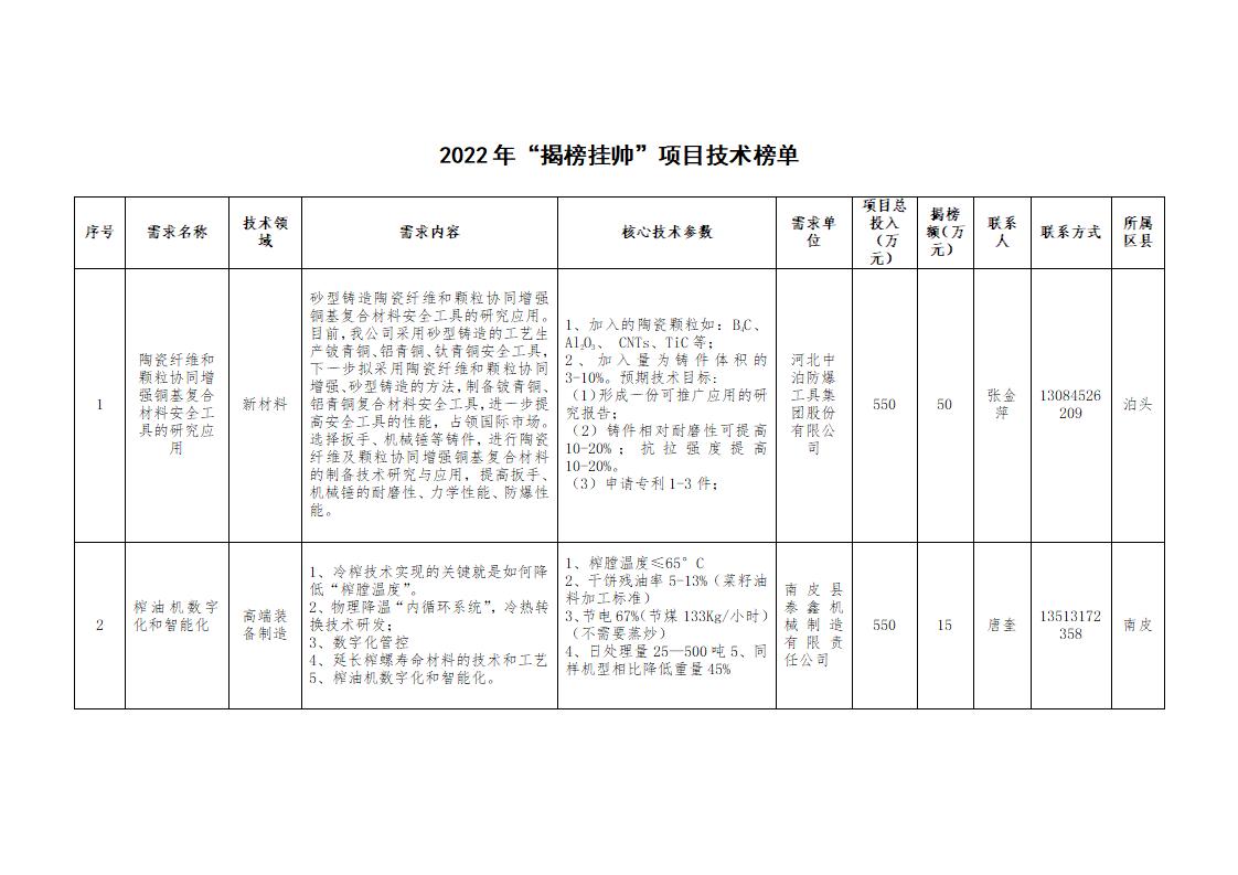 滄州市科技局關(guān)于公布2022年“揭榜掛帥”重點(diǎn)科技攻關(guān)項(xiàng)目