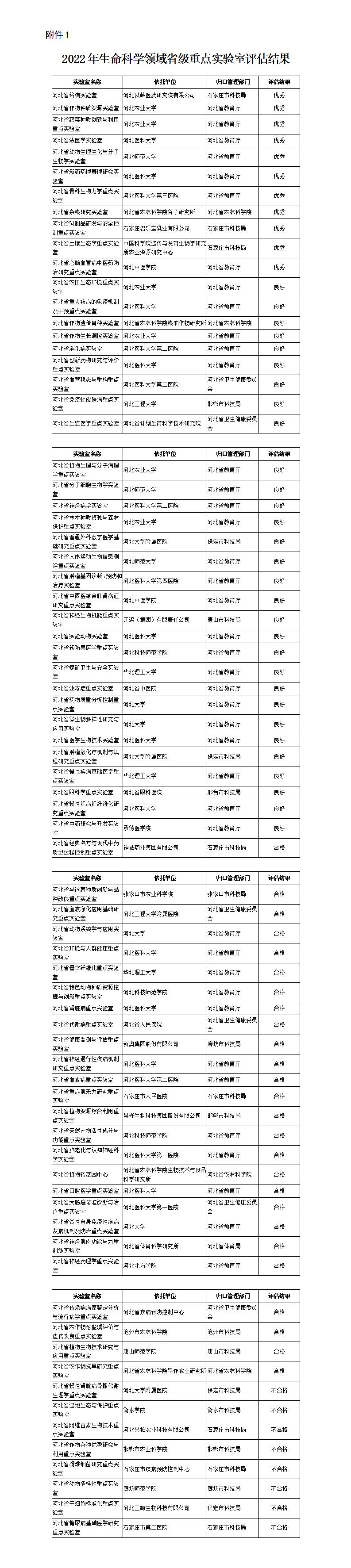 河北省科學(xué)技術(shù)廳關(guān)于2022年度省級(jí)重點(diǎn)實(shí)驗(yàn)室、技術(shù)創(chuàng)新中心建設(shè)運(yùn)行績(jī)效評(píng)估結(jié)果的公示 根據(jù)《河北省學(xué)科重點(diǎn)實(shí)驗(yàn)室建設(shè)與運(yùn)行管理辦法