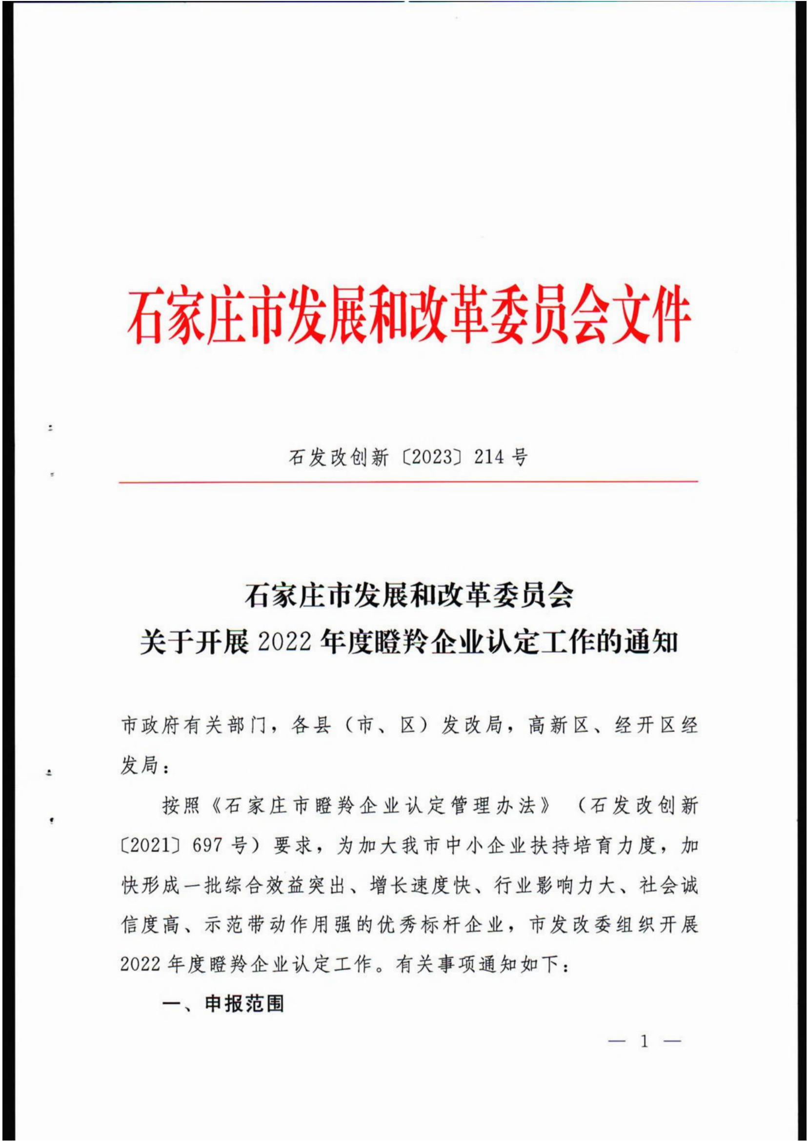 石家莊市發(fā)展和改革委員會(huì)關(guān)于開(kāi)展 2022 年度瞪羚企業(yè)認(rèn)定工作的通知