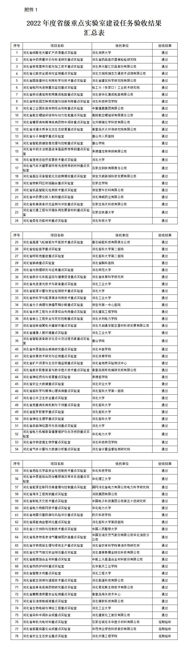 河北省科學(xué)技術(shù)廳關(guān)于發(fā)布2022年度省級(jí)重點(diǎn)實(shí)驗(yàn)室、技術(shù)創(chuàng)新中心建設(shè)任務(wù)驗(yàn)收結(jié)果的通知各市(含定州、辛集市)科技局,雄安新區(qū)改革發(fā)展局