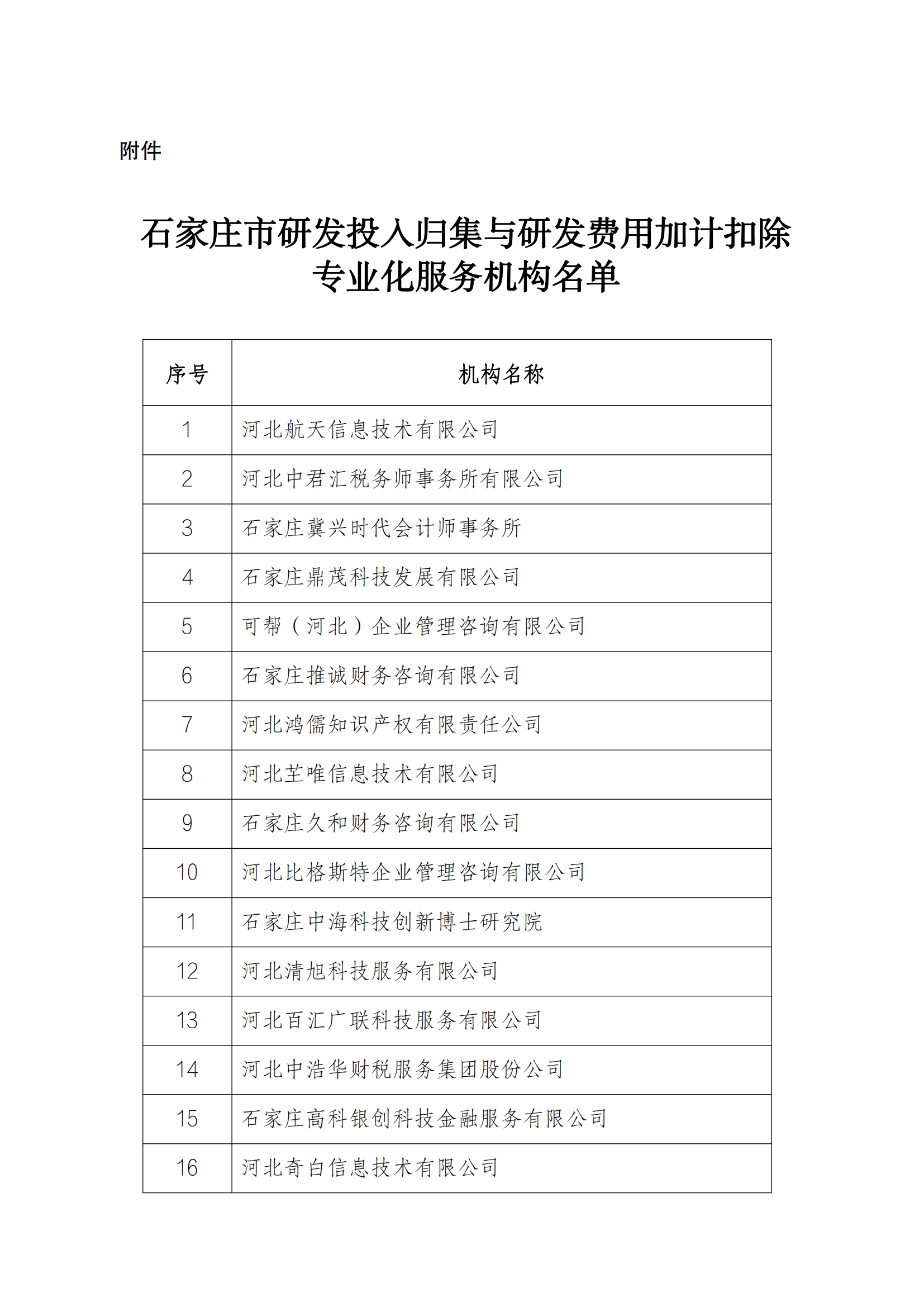 石家莊市科學(xué)技術(shù)局關(guān)于公布研發(fā)投入歸集與研發(fā)費(fèi)用加計(jì)扣除專(zhuān)業(yè)化服務(wù)機(jī)構(gòu)名單的通知石科計(jì)函〔2023〕31號(hào)各縣(市)區(qū)科技管理部門(mén),相關(guān)