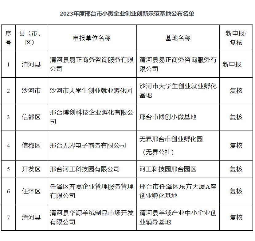 邢臺市工業(yè)和信息化局 關(guān)于公布2023年度邢臺市小微企業(yè)創(chuàng)業(yè)