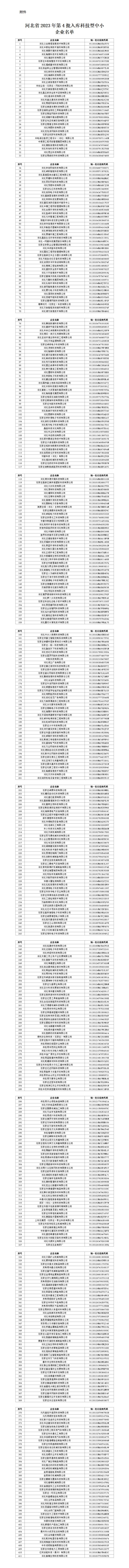河北省科學(xué)技術(shù)廳關(guān)于2023年第四批納入“科技型中小企業(yè)信息庫”企業(yè)名單的公告 根據(jù)《科技型中小企業(yè)評價辦法》(國科發(fā)政〔2017〕115