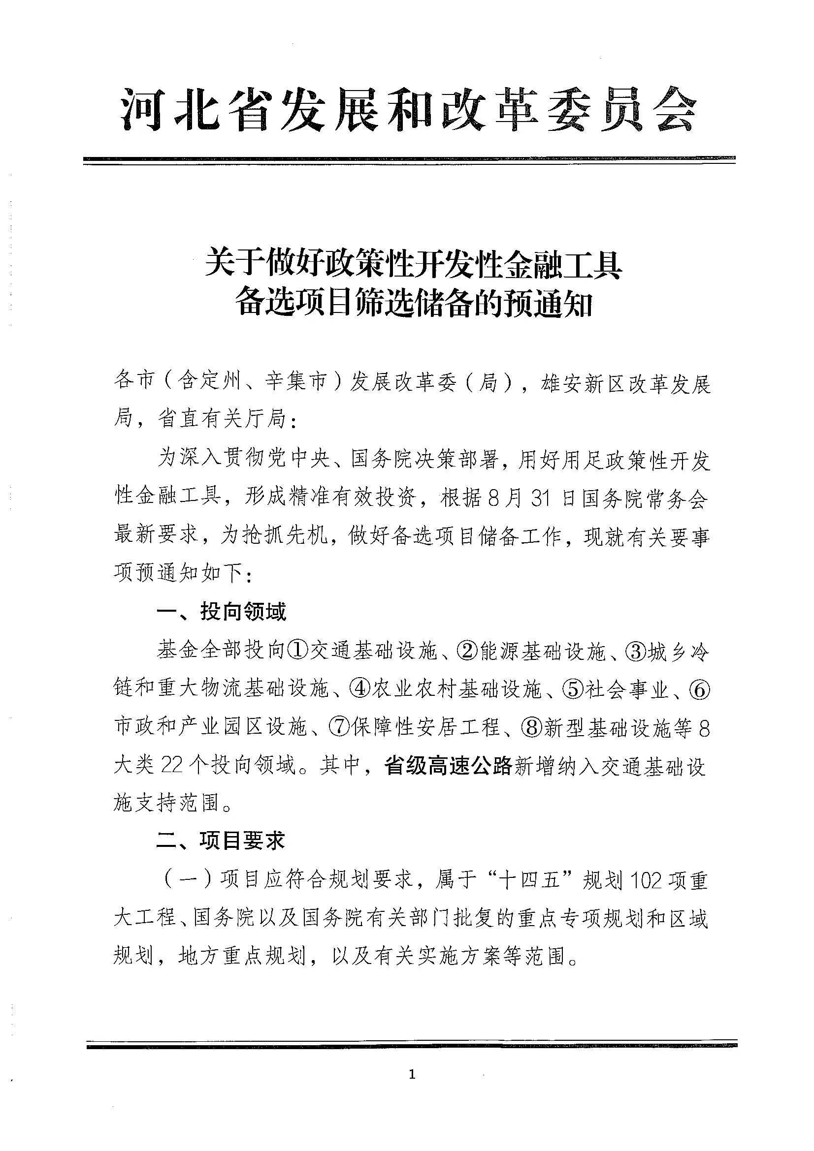 衡水高新區(qū)經(jīng)濟(jì)發(fā)展局關(guān)于做好政策性開(kāi)發(fā)性金融工具備選項(xiàng)目的預(yù)通知衡水高新區(qū)各部門(mén)、各企業(yè):河北省發(fā)展和改革委員會(huì)根據(jù)8月31日國(guó)務(wù)院