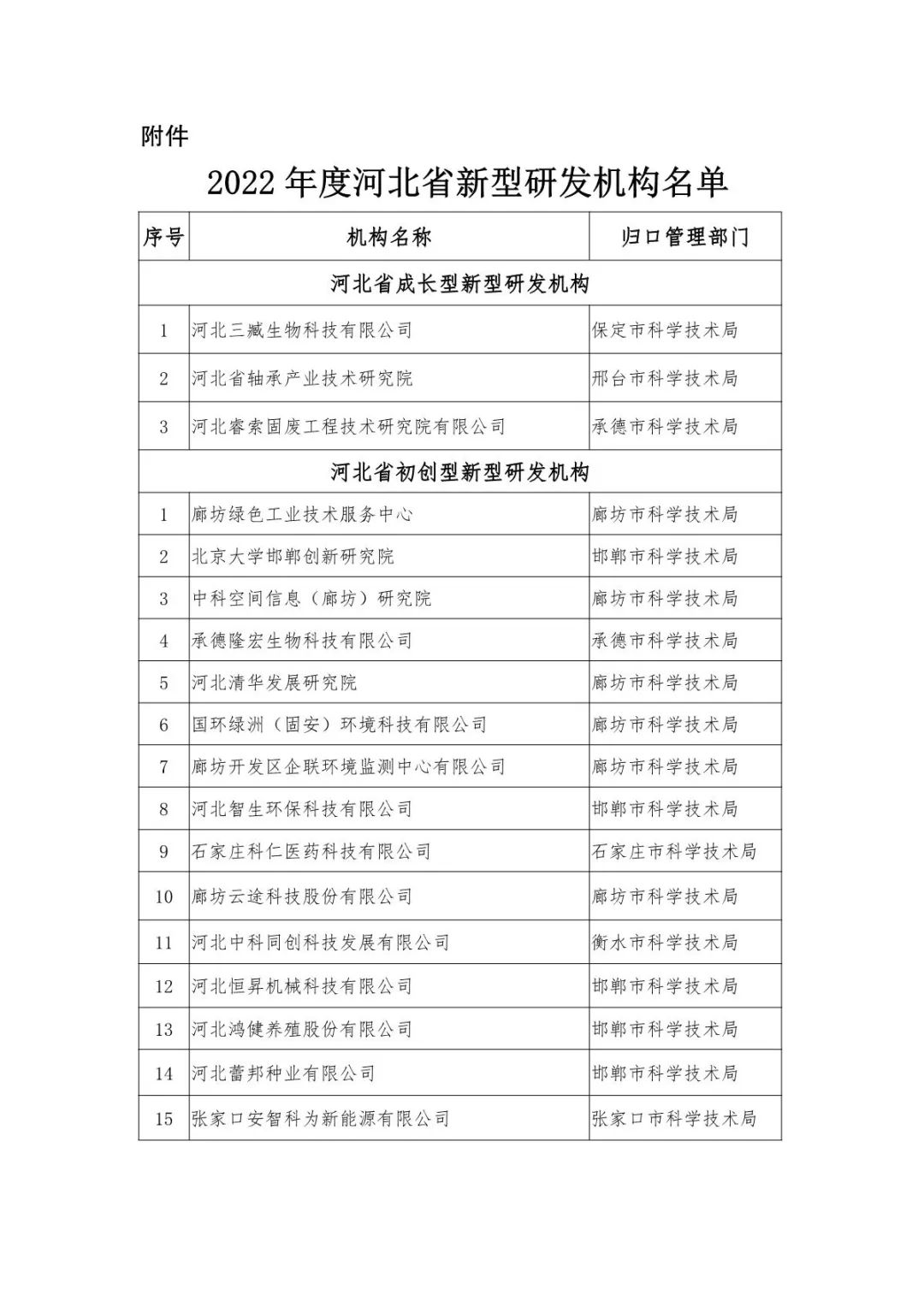 關(guān)于公布2022年度河北省新型研發(fā)機(jī)構(gòu)的通知