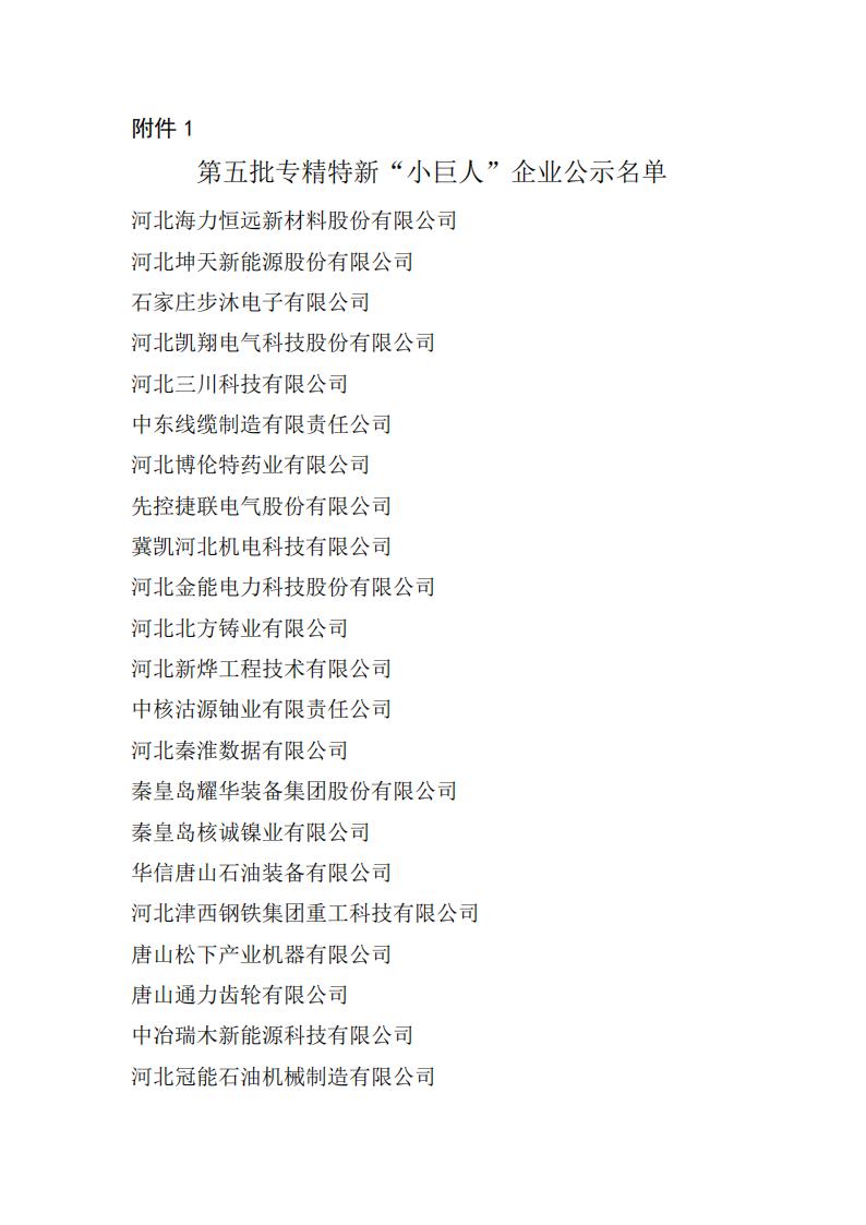 關(guān)于河北省第五批專精特新“小巨人”企業(yè)和第二批專精特