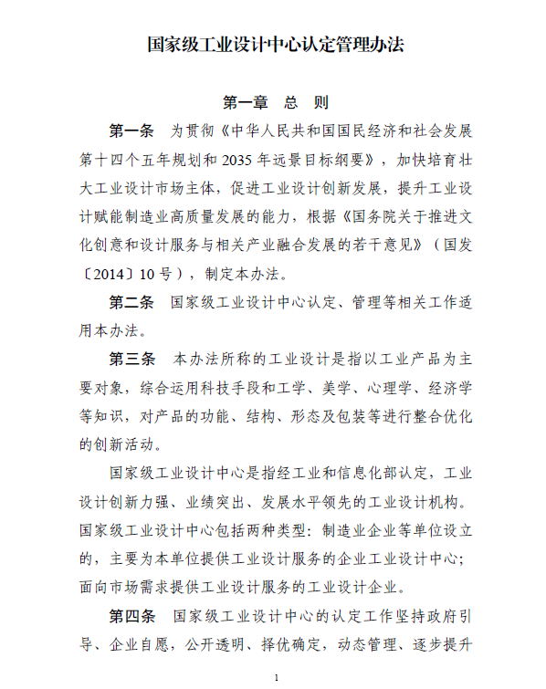 工業(yè)和信息化部關(guān)于印發(fā)《國(guó)家級(jí)工業(yè)設(shè)計(jì)中心認(rèn)定管理辦