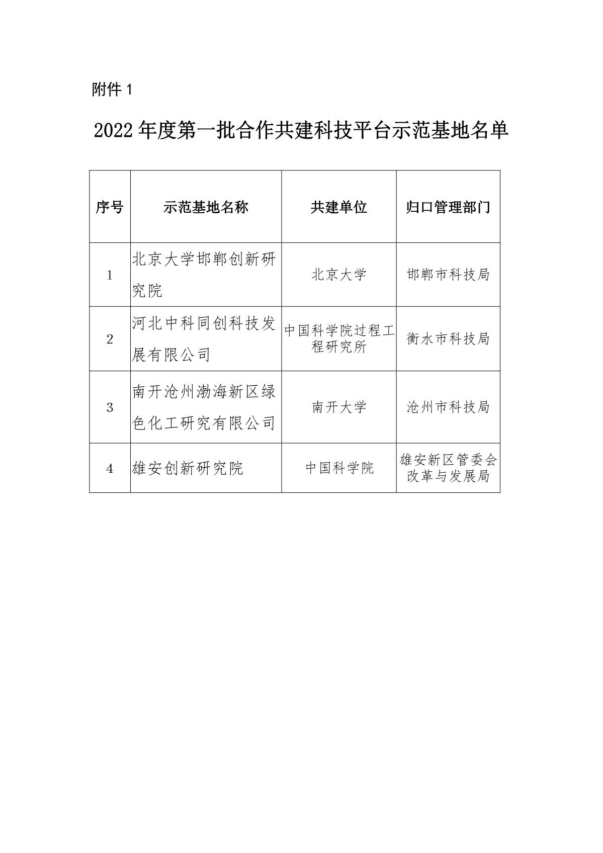 關(guān)于公布2022年度第一批河北省合作共建科技平臺示范基地名