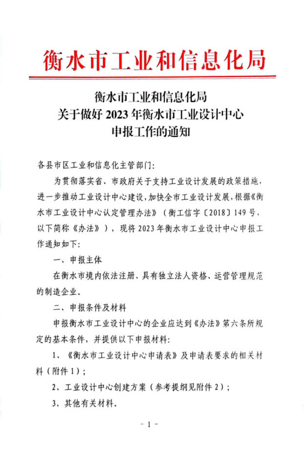 衡水市工業(yè)和信息化局關(guān)于做好2023年衡水市工業(yè)設(shè)計(jì)中心申報(bào)工作的通知