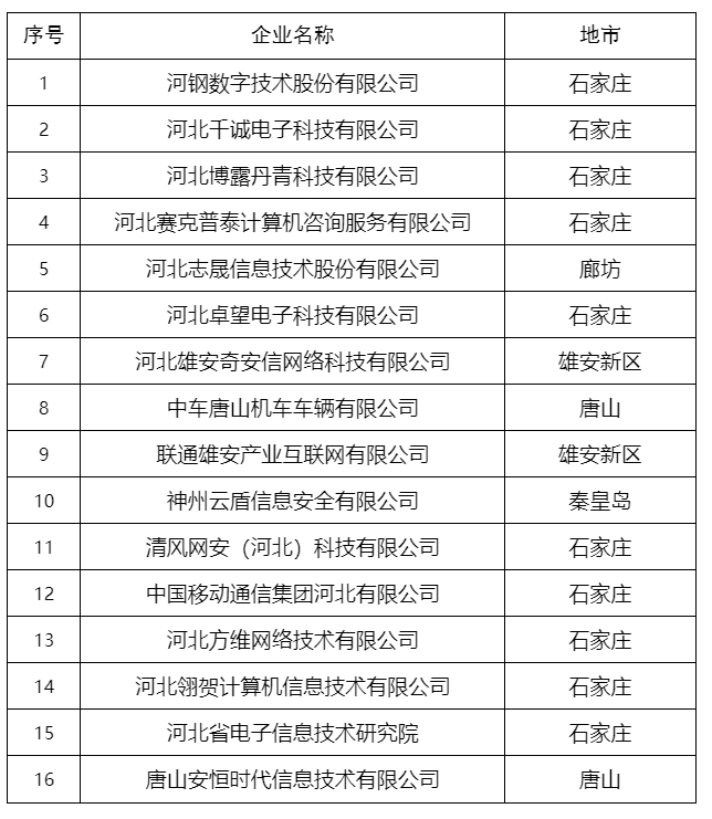 2023年河北省工業(yè)信息安全服務(wù)支撐單位公示