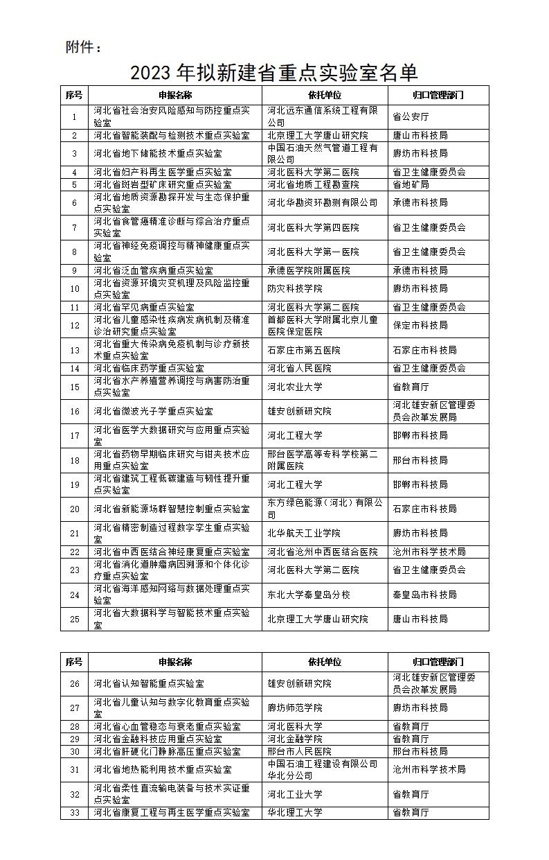 河北省科學(xué)技術(shù)廳關(guān)于2023年擬新建省重點實驗室的公示