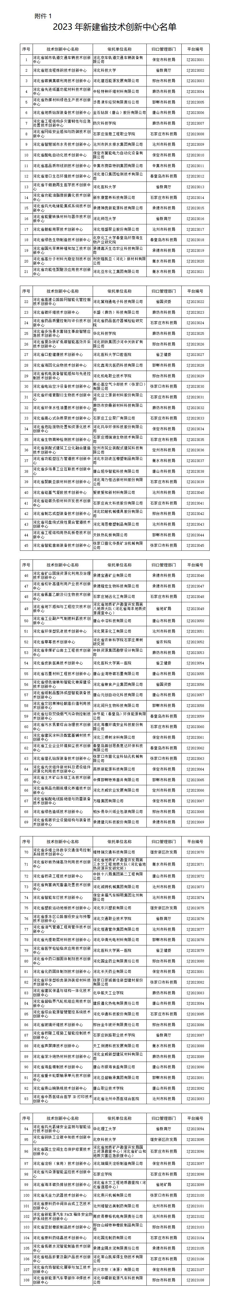 關(guān)于公布2023年新建省技術(shù)創(chuàng)新中心名單的通知河北省科學(xué)技術(shù)廳各市(含定州、辛集市)科技局、雄安新區(qū)改革發(fā)展局,省直有關(guān)部門,各有關(guān)單