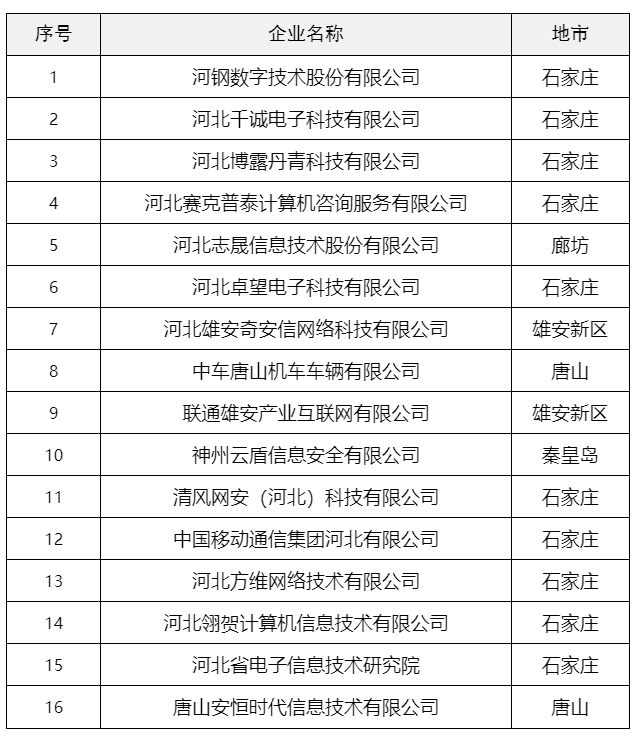 關(guān)于發(fā)布2023年河北省工業(yè)信息安全服務(wù)支撐單位的通知各市(含定州、辛集)工業(yè)和信息化局,雄安新區(qū)改革發(fā)展局: 按照《河北省信息化與