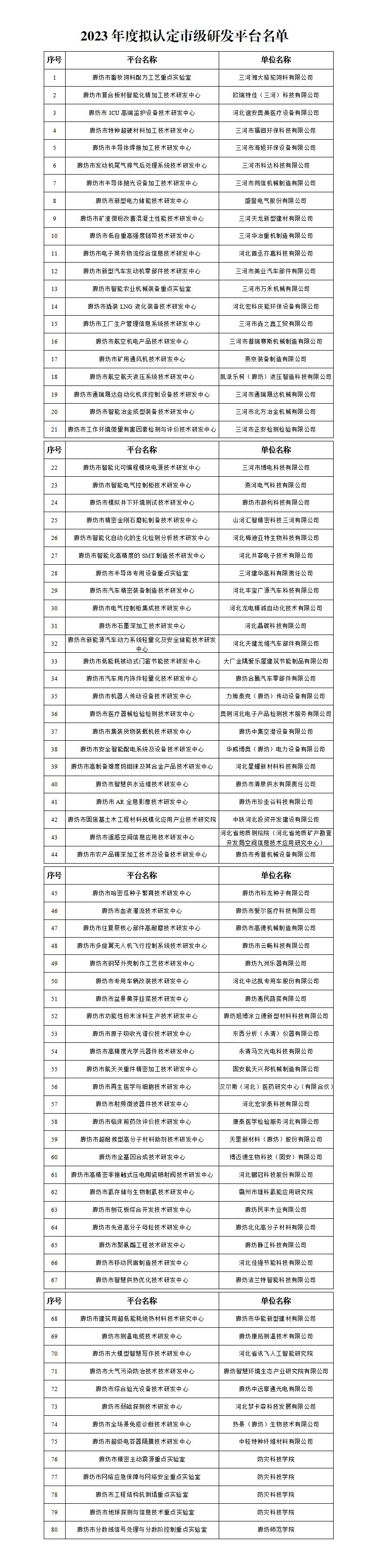廊坊市科學(xué)技術(shù)局關(guān)于擬認(rèn)定2023年度市級研發(fā)平臺的公示按照《廊坊市科學(xué)技術(shù)局關(guān)于組織申報2023年市級研發(fā)平臺的通知》〔2023(58)號〕要